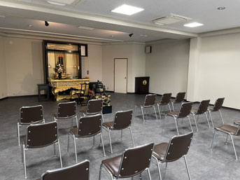 本堂の改修工事中は、会館1階を仮本堂として使用しております。